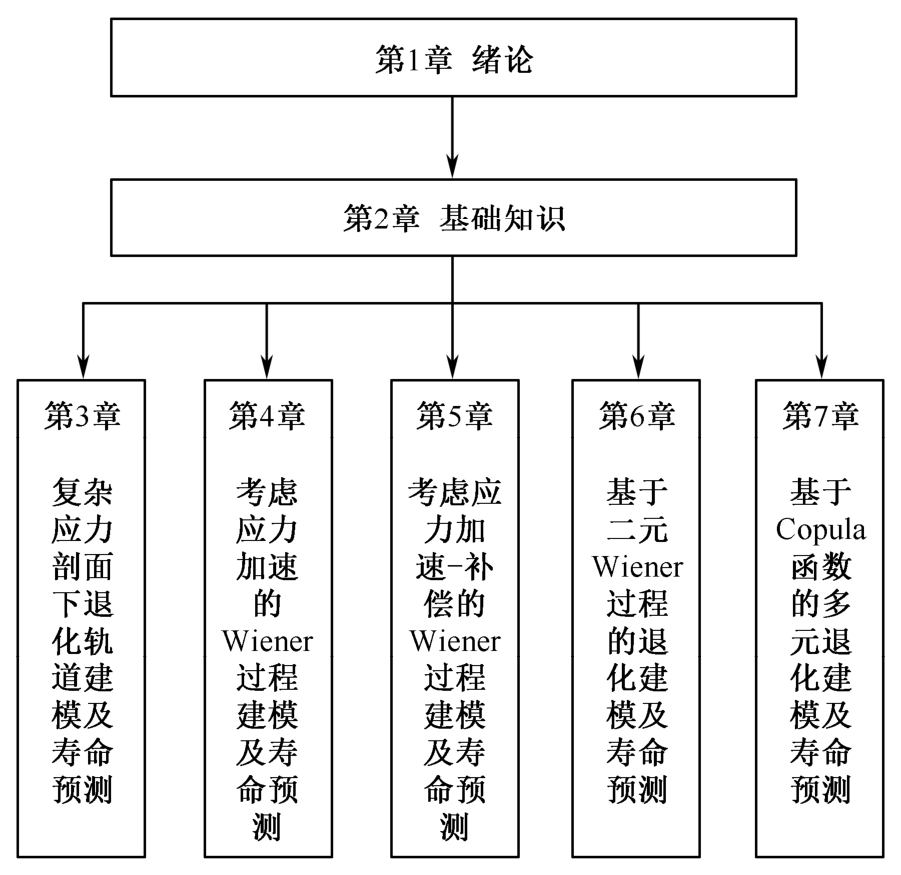 本书以几种常见的具有复杂退化规律的退化过程为研究对象,对其性能退化建模、可靠性评估、剩余寿命预测等关键技术展开探讨,用7章内容对相关问题进行了阐述,具体结构如下。