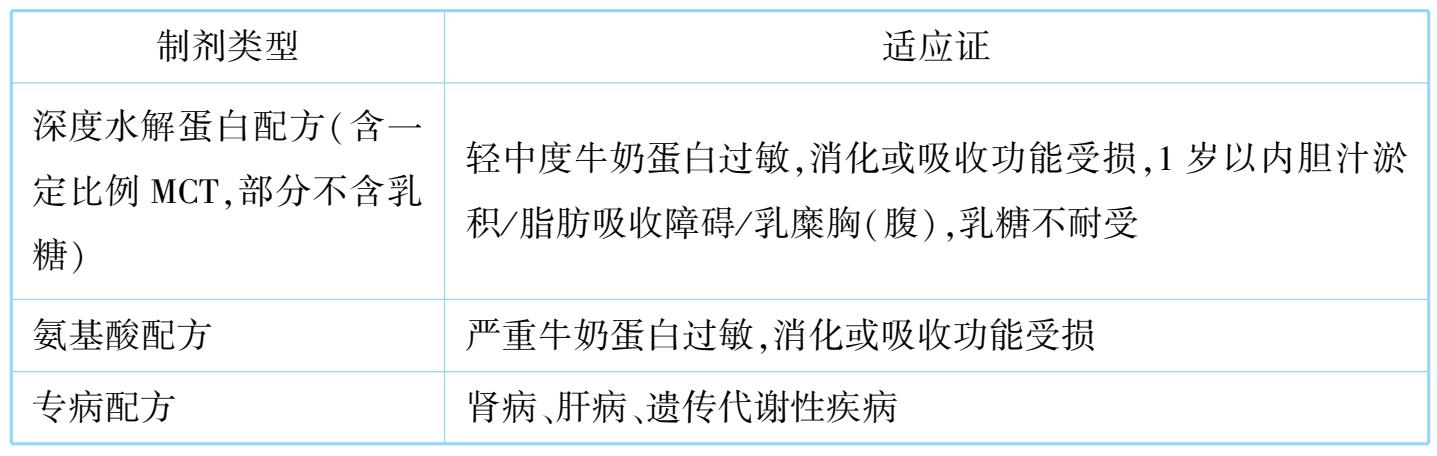 表 1.6.2 儿童常用肠内营养制剂及适应证