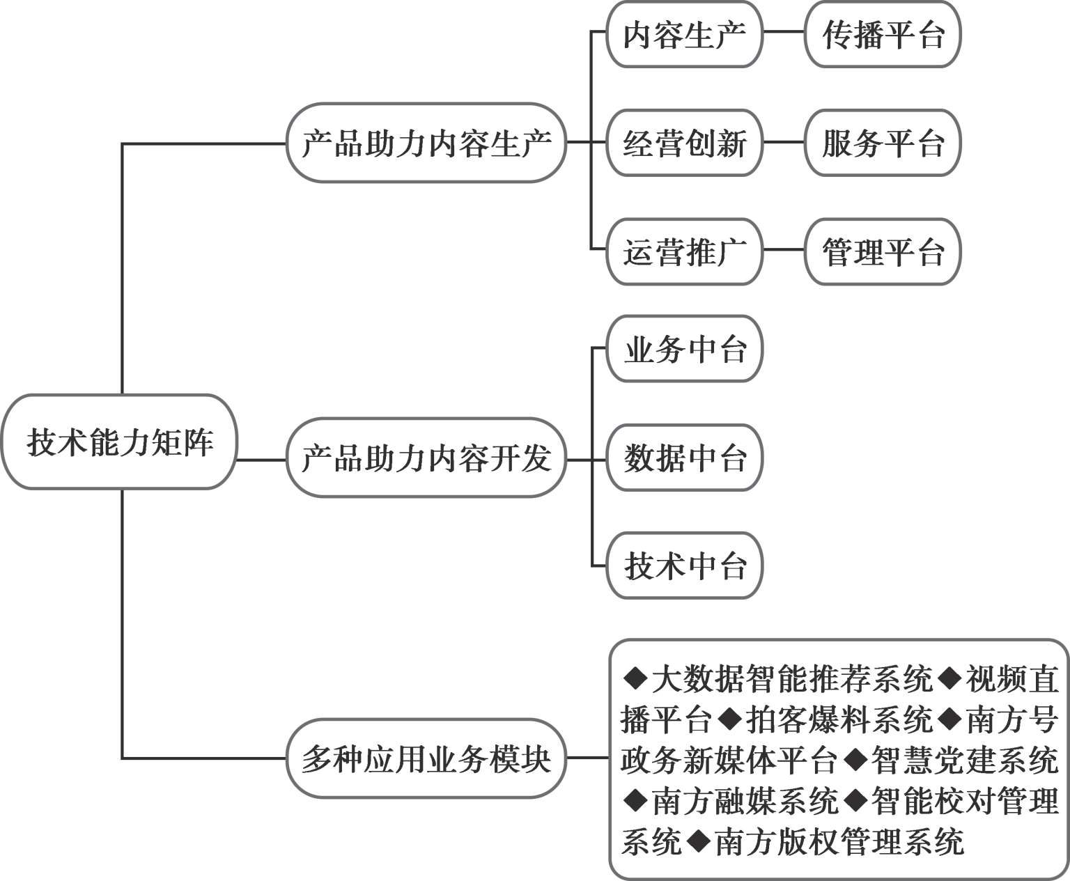 互联网时代下,产品开发能力是客户端发展的重要驱动力。在客户端创立之初,“南方+”便秉持形成自主可控的技术能力的战略目标,并构建自身产品技术团队。5 年发展期间,“南方+”逐渐形成了从平台架构,到产品转化,再到业务支撑的技术研发体系,助力“南方+”在内容生产分发核心领域的新玩法拓展,与社会服务能力的开发延伸。此外,南方报业集团建设的三套中台系统,使“南方+”与集团旗下各报刊、记者站内部的资源与能力进一步整合,减少产品研发的重复性,提升效率,体现媒体深度融合的意义与价值。