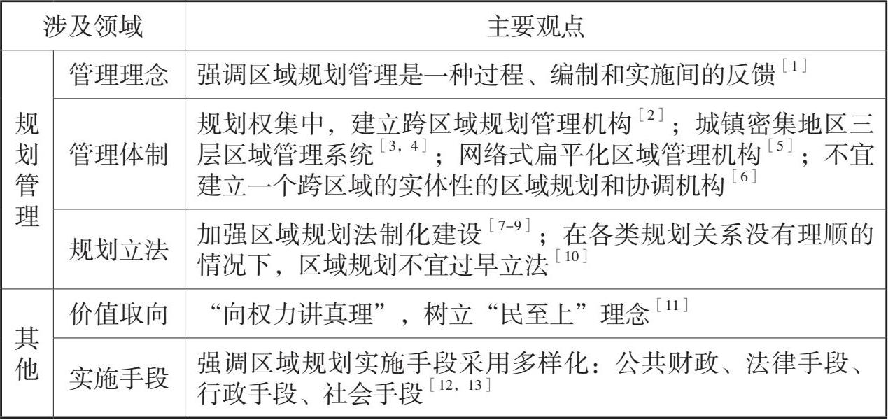 从内容看,区域分工理论、区域空间结构理论着眼于促进经济增长,探讨如何从空间结构、产业布局、发展战略模式等方面去实现要素的优化整合,实现区域经济最大化增长。区域可持续发展理论和区域一体化理论既追求经济增长,又将经济增长、环境保护和社会进步纳入规划目标体系中。“管治理论”和“人本主义规划理论”则更多体现了规划的人文关怀,注重了规划理论的价值承诺。