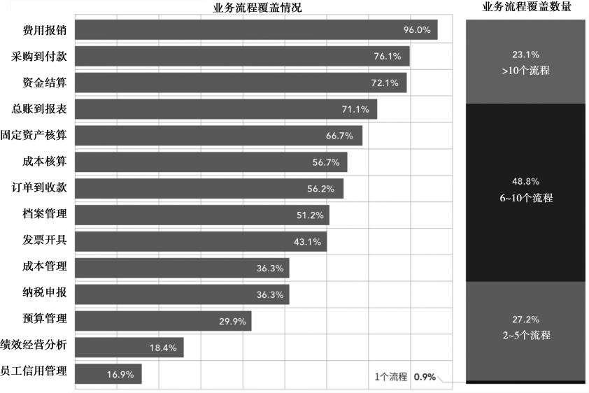 纳入财务共享服务中心的服务范围可参照《2018 年中国共享服务领域调研报告》。权威机构调查显示:80%的核算业务都能够纳入财务共享服务中心。财务共享服务中心覆盖的业务流程如图 2-9 所示。