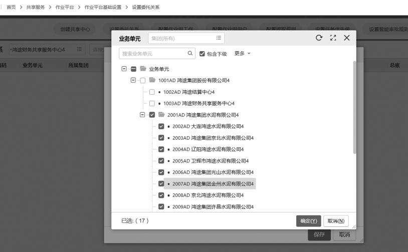 选择服务单位为鸿途集团水泥有限公司下 17 家分子公司,如图 2-36 所示。