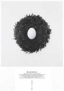 当点在画面中心时,视觉容易集中,此时的点具有安定、严肃、停滞的视觉效果,因此备受瞩目。如图 2-2 为无印良品的海报设计作品,画面中心的点非常鲜明地成为视觉中心。