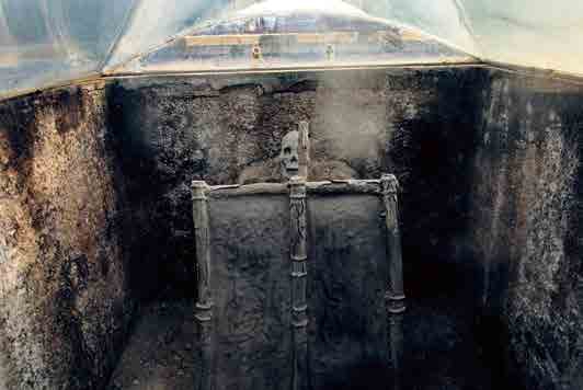 图7 殉葬的王宫卫士遗骸,其身前置有长盾