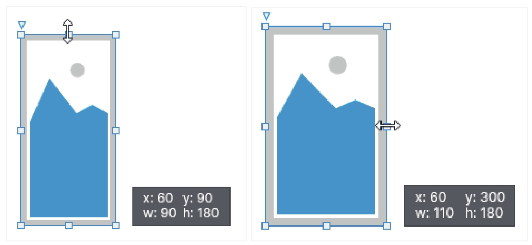选中元件后,元件四周出现4个控制点,拖动控制点可以在一个方向上任意调整元件的大小,如图2-32所示。拖曳元件四周的4个顶点,可以同时调整元件的宽和高,如图2-33所示。