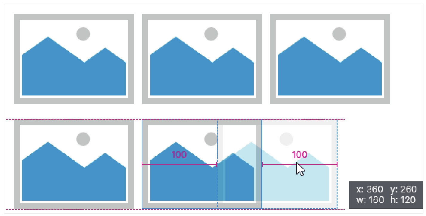 用户也可以在按住【Ctrl】键的同时向任意方向拖曳对象,实现对象的快速复制。复制对象时,按住【Shift+Ctrl】组合键的同时向左右或上下方向拖曳元件,可以保证在水平和垂直方向上复制元件,如图2-43所示。