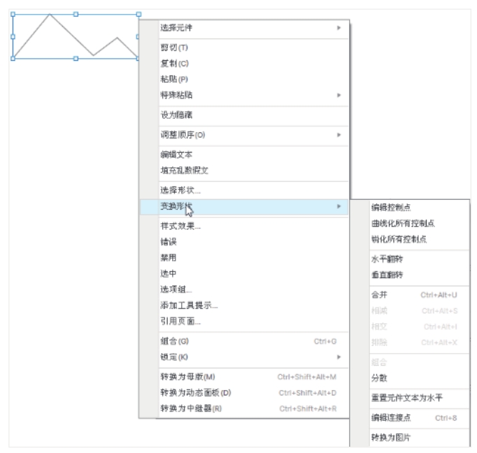 在元件上方单击鼠标右键,在弹出的快捷菜单中选择“变换形状>水平翻转”命令,如图2-38所示,水平翻转后的元件效果如图2-39所示;在弹出的快捷菜单中选择“变换形状>垂直翻转”命令,垂直翻转后的元件效果如图2-40所示。