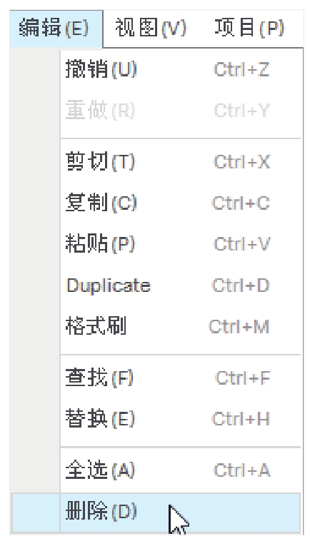 选中元件后,按【Delete】键可以将其删除。也可以通过执行“编辑>删除”命令删除对象,如图2-46所示。