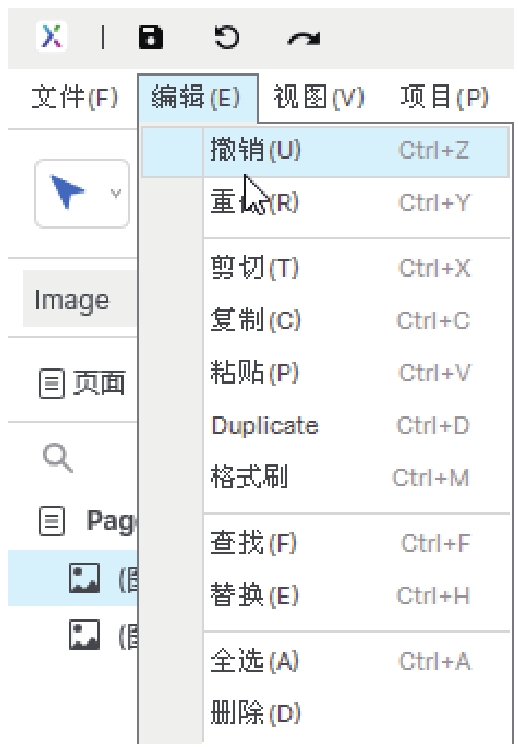 用户也可以通过单击工作界面左上角的“撤销”按钮或者“重做”按钮,完成撤销操作或者重做操作。