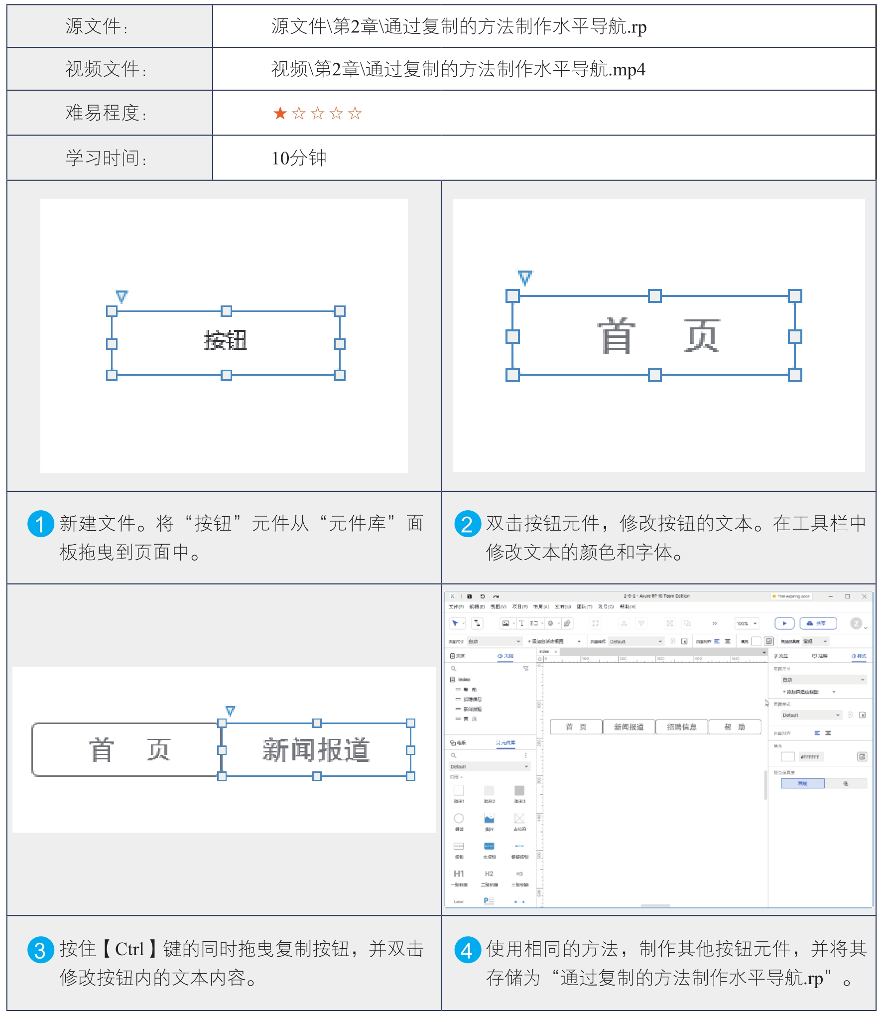 本章主要针对Axure RP 10的基本操作进行讲解,从文件的新建和存储到文件的打开与导入,都进行了详细介绍,并针对操作中经常用到的自动备份、还原与恢复操作等内容进行了讲解。