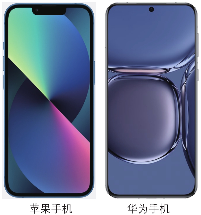 图3-66所示为苹果手机和华为手机的屏幕尺寸对比。