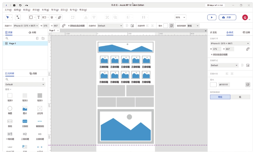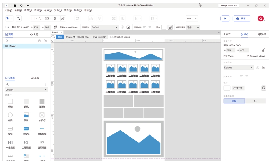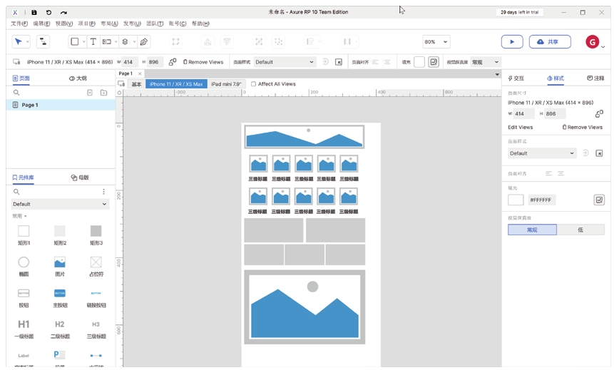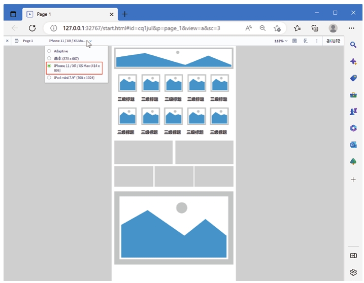 为了使页面原型在不同尺寸的终端屏幕上都能正常显示,Axure RP 10为用户提供了自适应视图功能。用户可以在自适应视图中定义多个屏幕尺寸,当在不同的屏幕尺寸上浏览时,页面的样式或布局会自动发生变化。