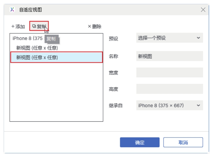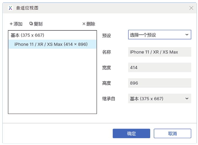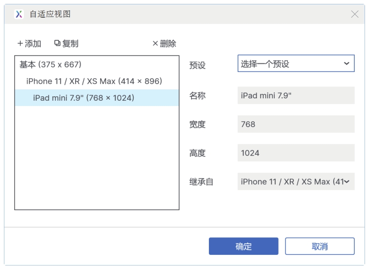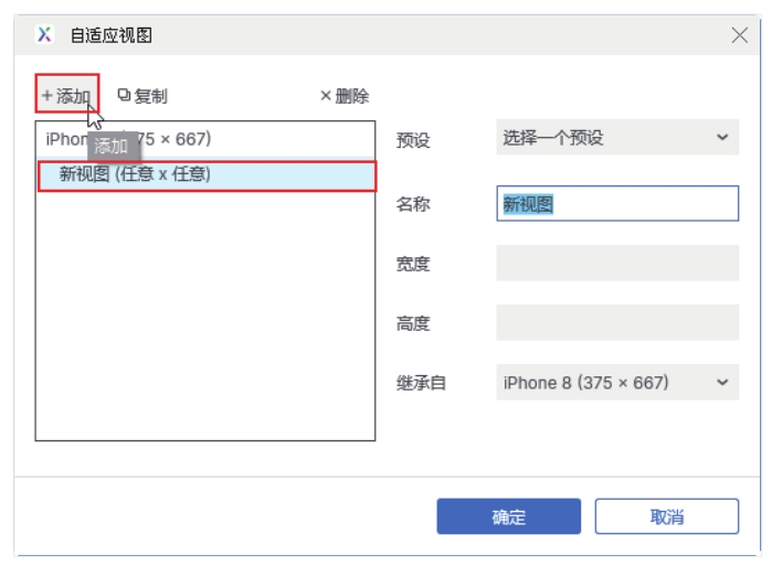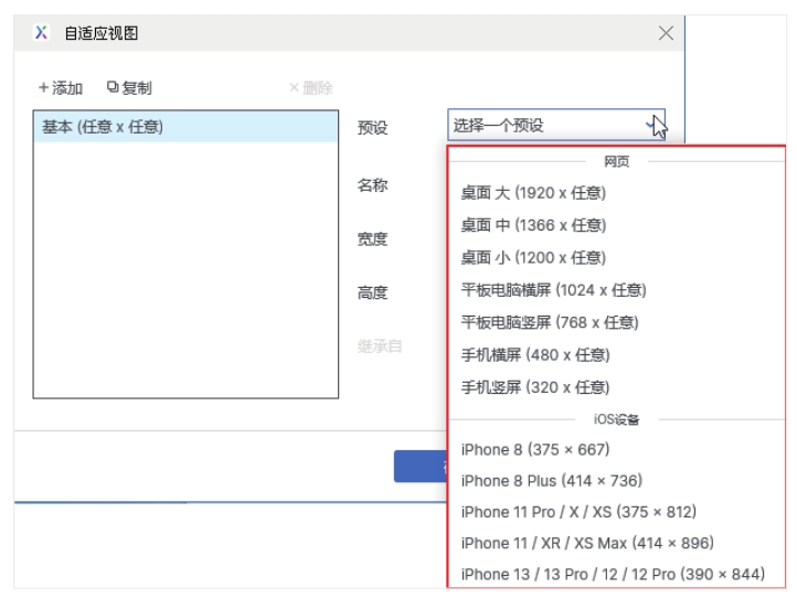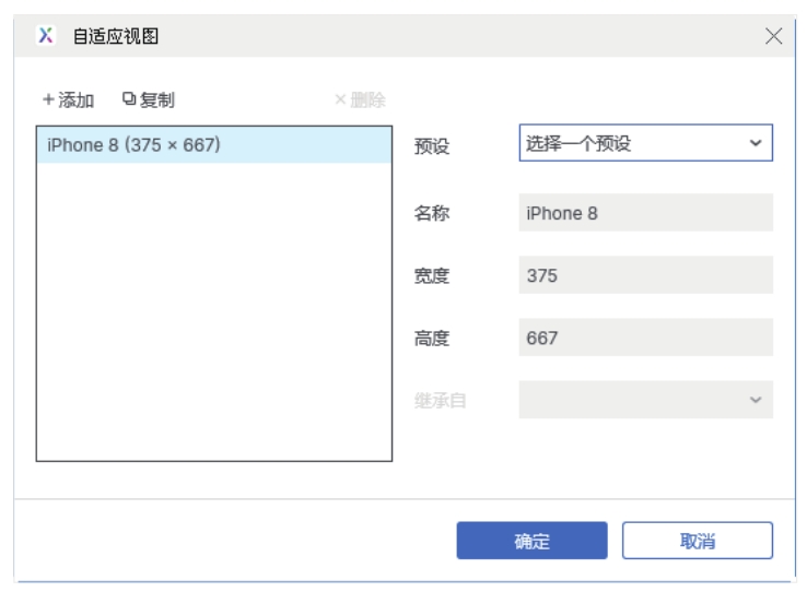 “自适应视图”对话框中默认包含一个基本的适配选项,通过它可以设置最基础的适配尺寸。
