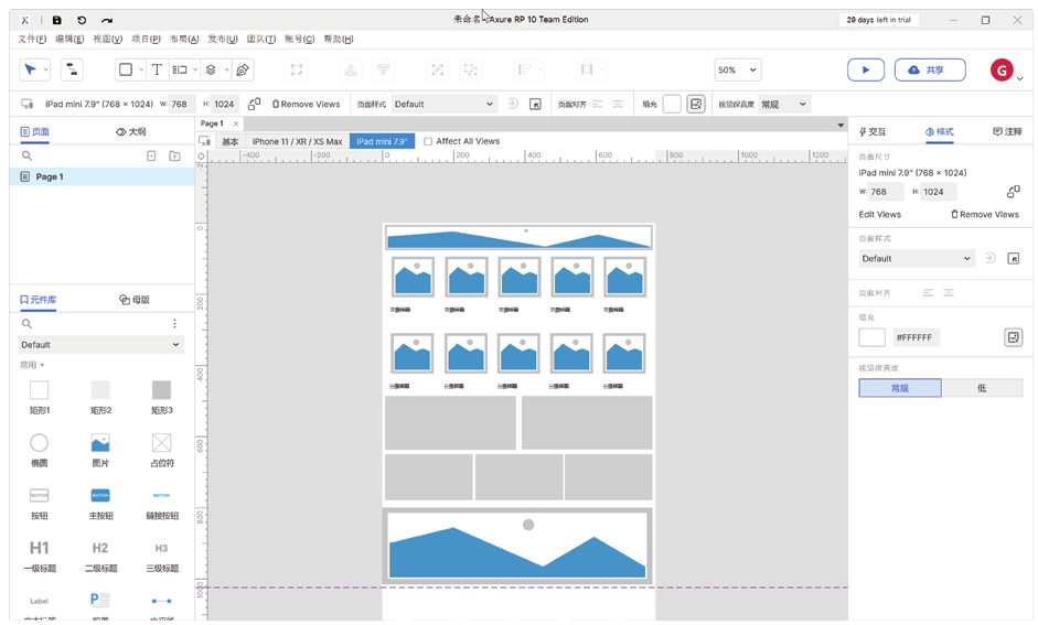 单击工作区顶部的“iPad mini 7.9”(768×1024)”选项卡,调整元件的大小和分布,页面效果如图3-79所示。