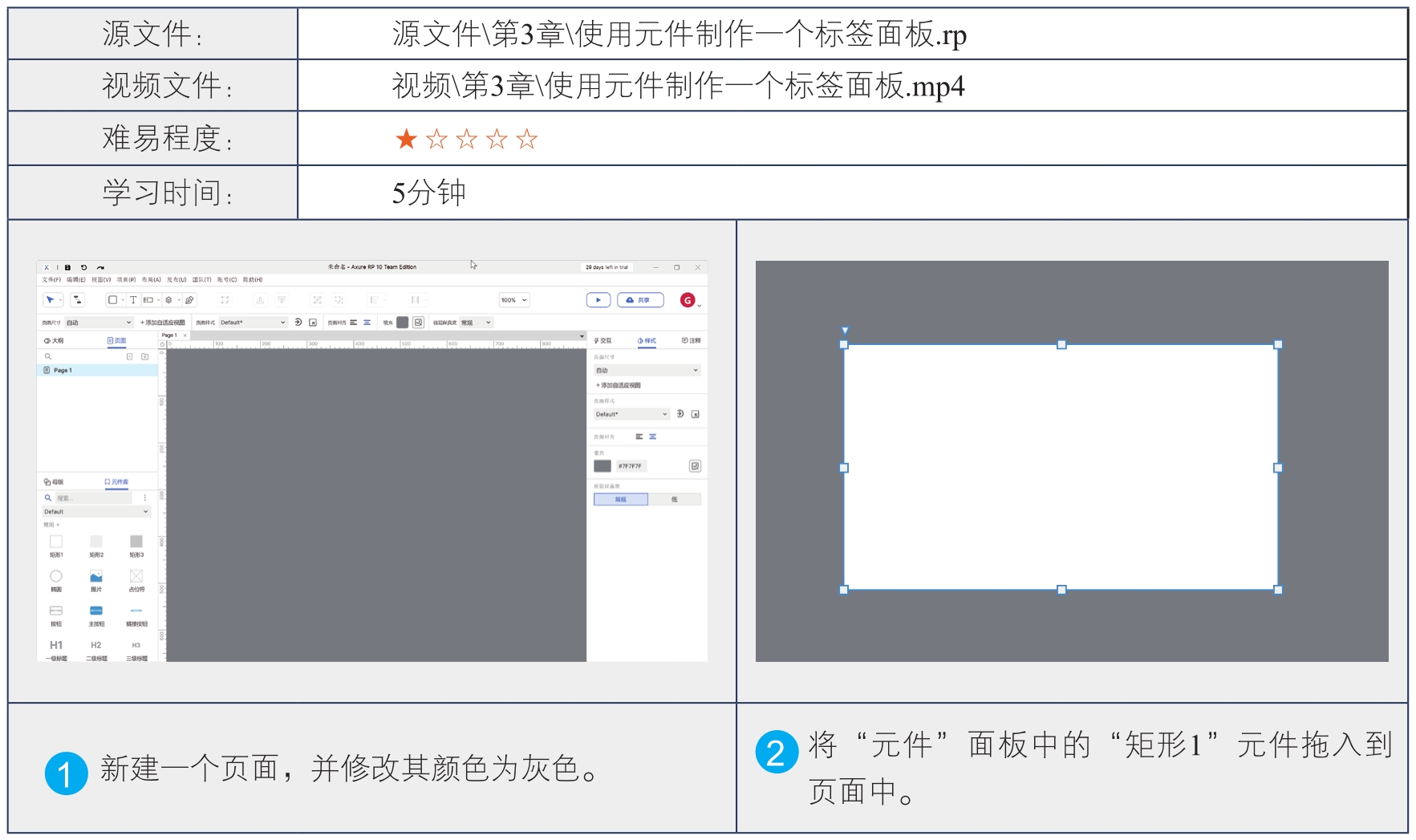 本案例将使用元件完成一个标签面板的制作,制作过程中要思考页面的创建和对象操作的要点,并熟练地应用到实际操作中。