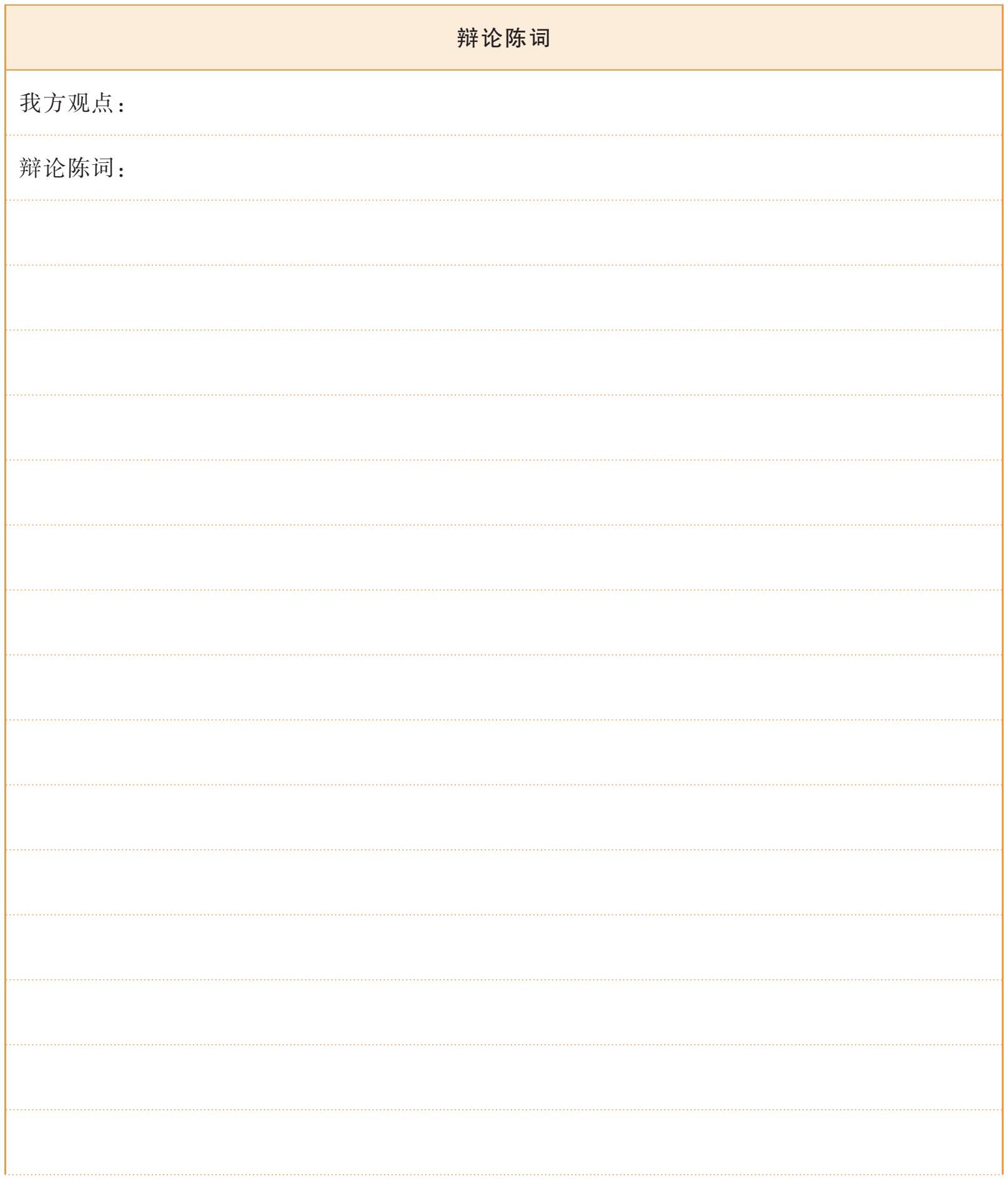 11.任课教师对本次辩论作出点评总结,同时要求每名学生根据辩论过程自行决定写一辩陈词、二辩陈词或其他阶段的辩论陈词。