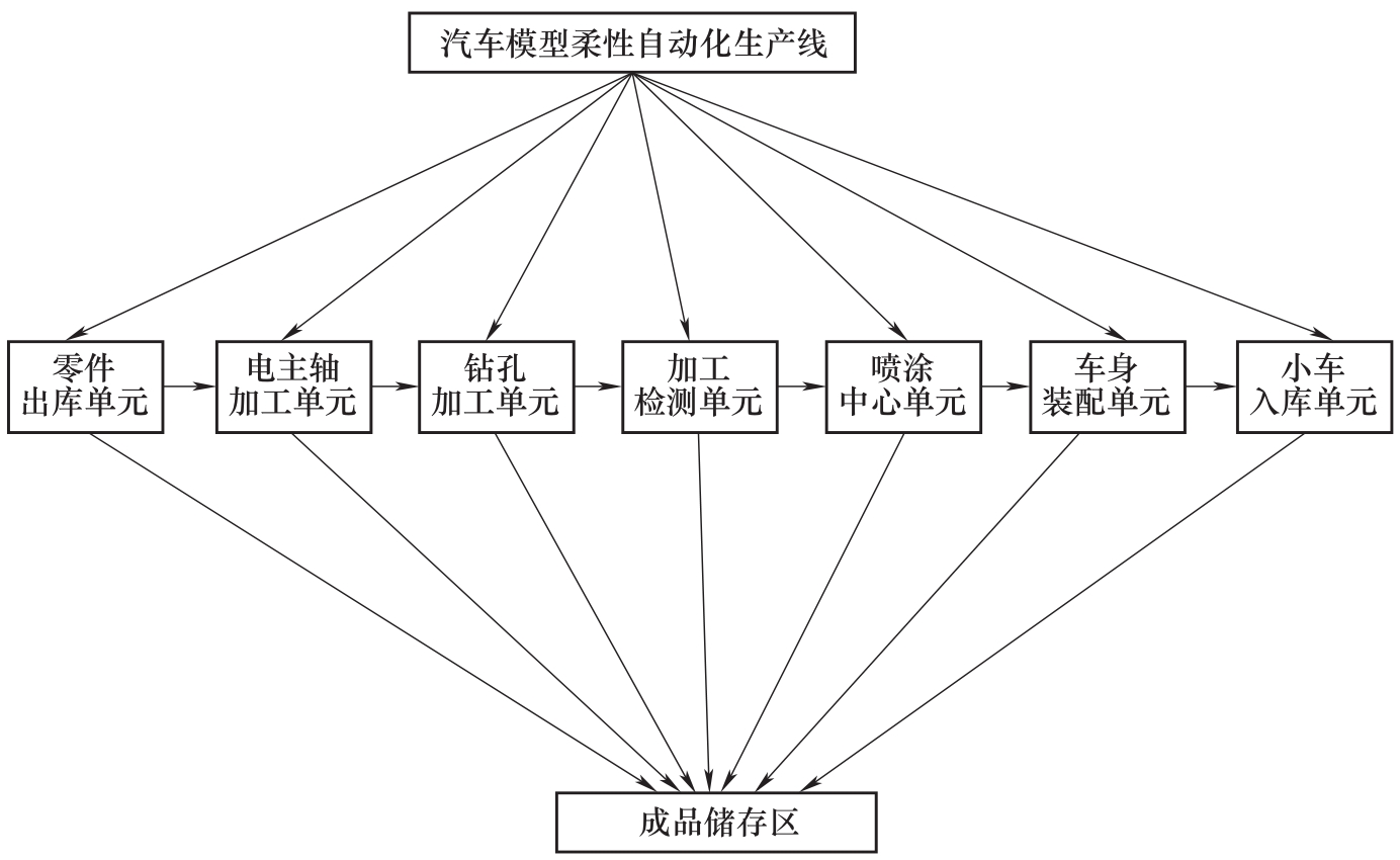 汽车模型柔性自动化生产线的各单元关系如图2-12所示。