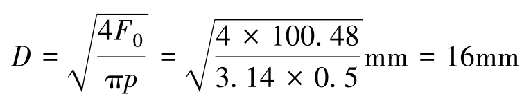 其中, d 为活塞杆直径(mm),一般取 d =0.3 D 。