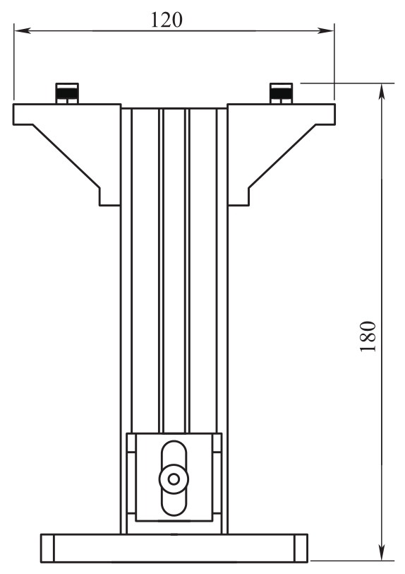 2)传送带的主体三维模型设计完成后,再开展传送带支架、底座等配件的设计。首先,选择传送带支架材料和型号,根据实际情况,传送带支架材料选择欧标铝型材4040-2.0标准款;然后开展支架的三维结构设计;最后开展底座的三维结构设计,传送带支架的二维视图如图2-13和图2-14所示。