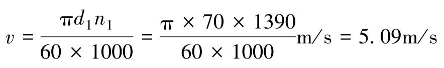 其中,包角修正系数 K α =0.92,长度系数 K L =0.93,单根V带的基本额定功率 P 0 =0.93kW,Δ P 0 =0.22kW。