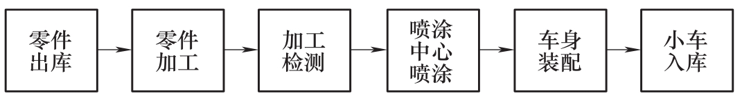 汽车模型自动化生产线主要模拟汽车模型的零件出库、加工、检测、喷涂、装配、入库等生产工序,其生产流程如图2-1所示。