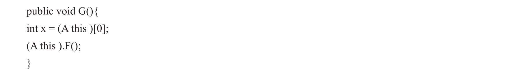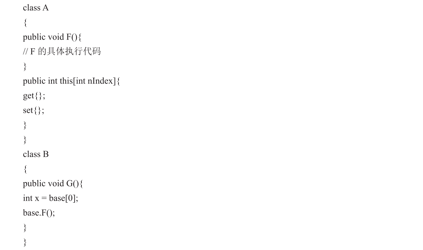类B从类A中继承B的方法,G中调用了A的方法、F和索引指示器方法。F在进行编译时等价于