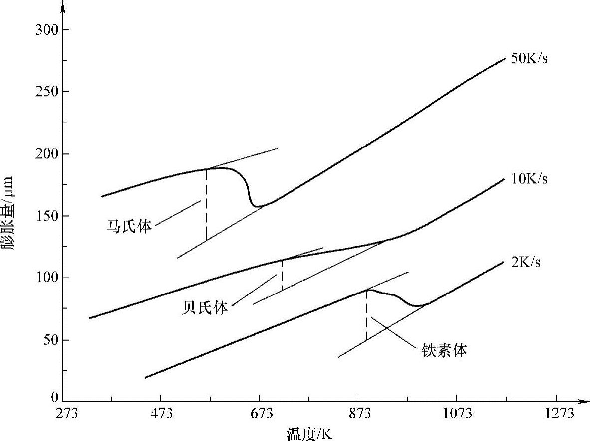 图2-13 冷却速率分别为50K/s、10K/s和2K/s时硼钢板的DIL曲线