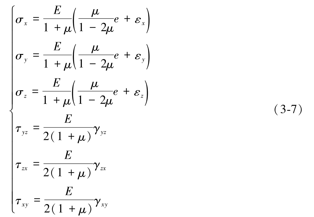 式中, e =ε x +ε y +ε z 是体积应变。