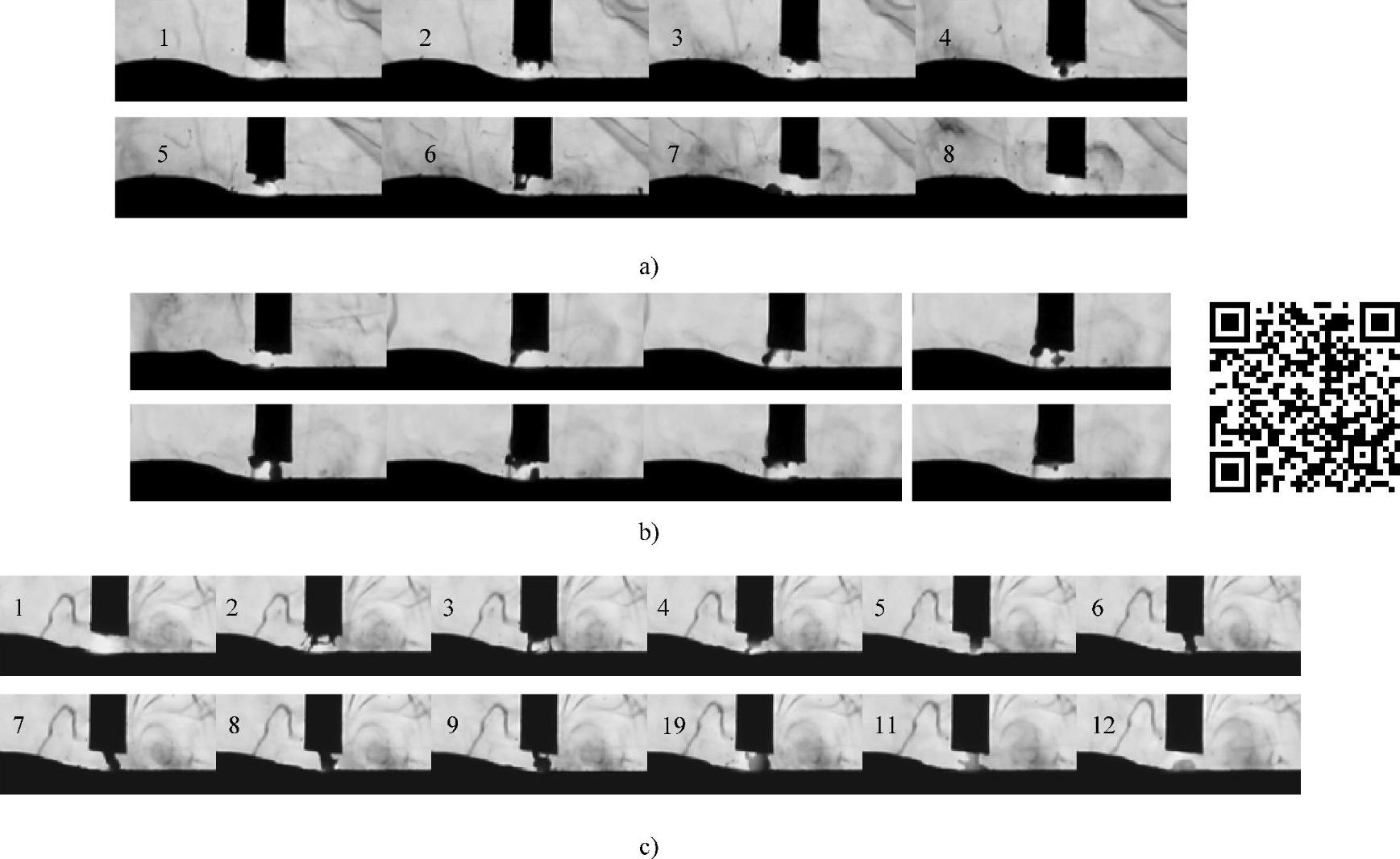图3-4b看到的熔滴短路过程比较复杂,第3帧照片熔滴与熔池发生短暂的接触短路,而后第4帧照片又迅速脱离接触,电弧复燃,紧接着又在第5帧照片熔滴又一次发生瞬时的短路,同时进行了熔滴的过渡,之后电弧复燃。这里接连发生的两次短路行为,前一个熔滴短路没有伴随熔滴的过渡,属于B型短路,而接下来的短路行为则伴随着熔滴金属的过渡,为C型短路。