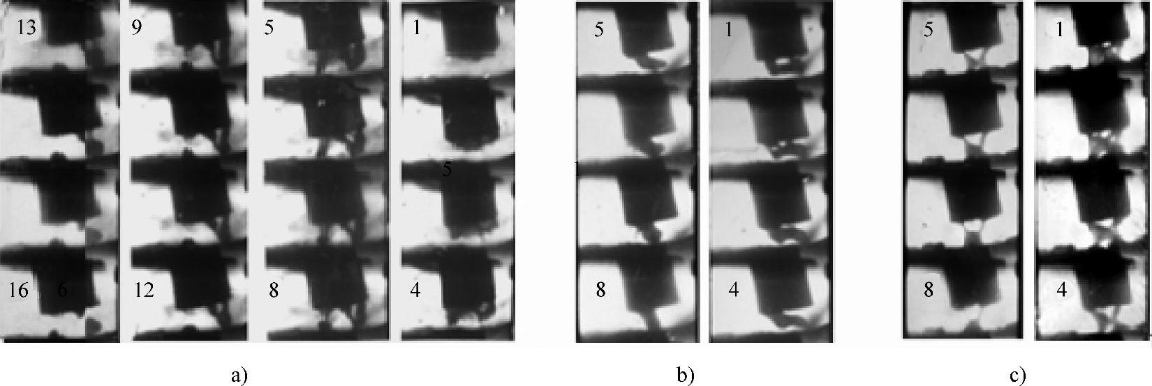 图3-4 钛钙型结构钢焊条瞬时短路过渡的高速摄影照片(二)