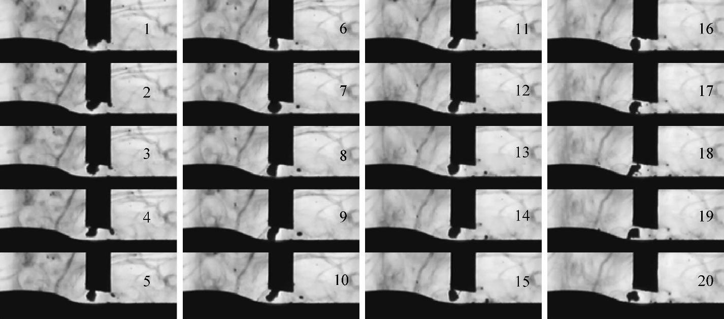 图3-19 碳钢焊条落下的熔滴发生体积长大的高速摄影照片
