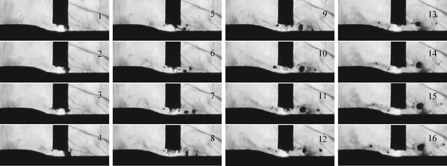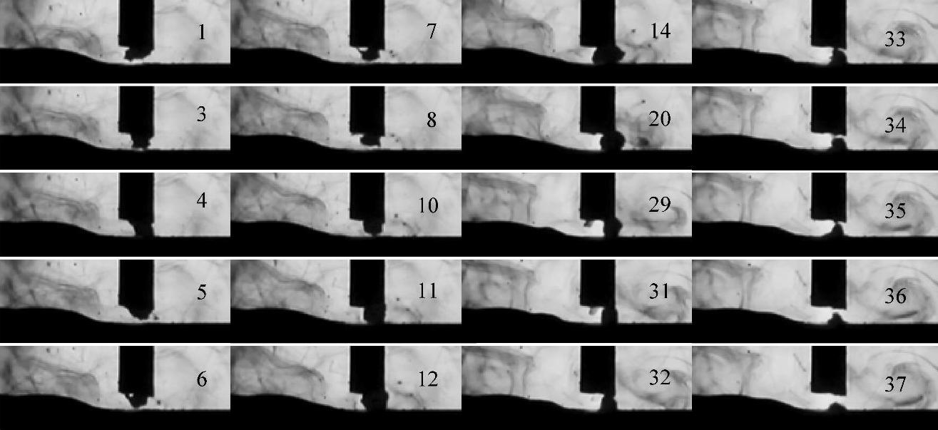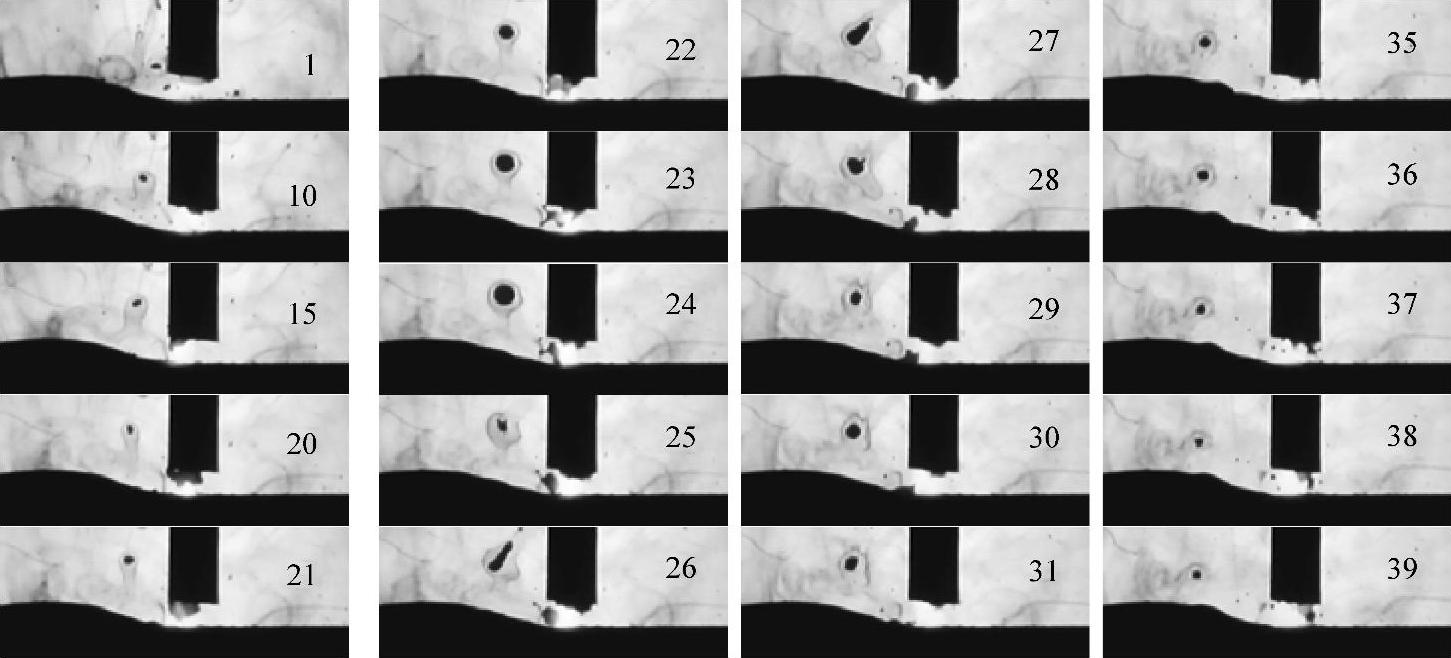 图3-20 悬浮状熔滴发生形状和体积变化的高速摄影照片