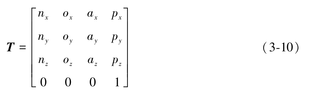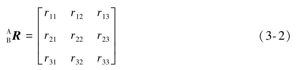 称为旋转矩阵。式(3-2)中的上标A表示参考坐标系{A},下标B表示被描述的坐标系{B}。