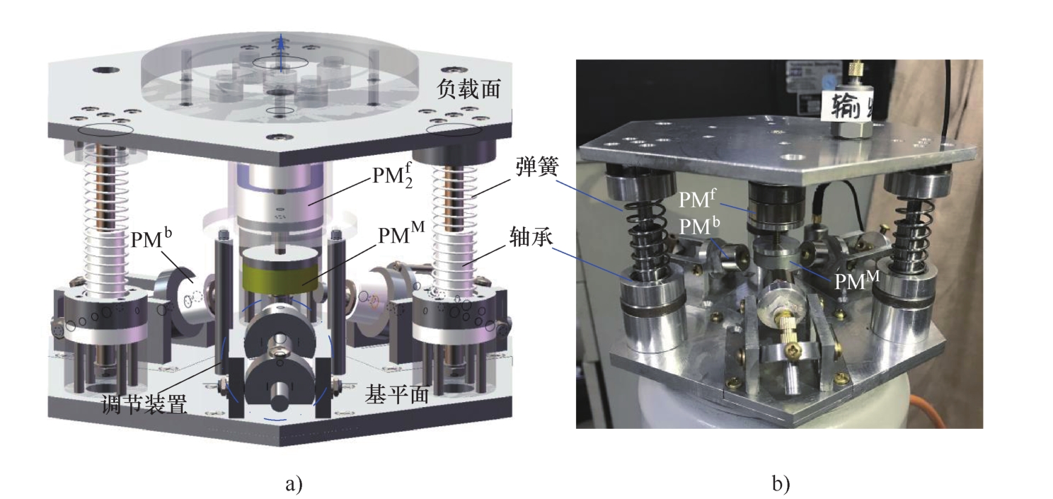 )构成。三个运动环形永磁体通过中间轴固定依次安装在负载面底部,其中,环形永磁体PM