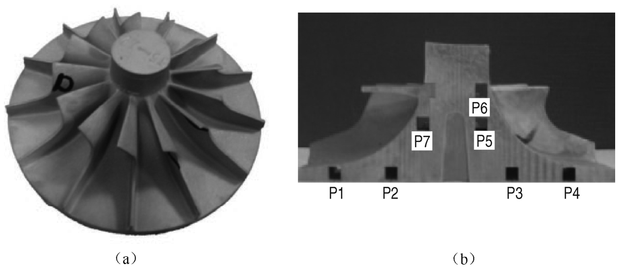Fig. 5 Schematic of an aircraft turbine wheel casting. (a) aircraft turbine wheel casting; (b) specimen positions.