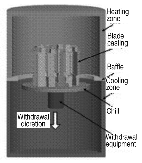The schematic of the directional solidification process of turbine blade casting is shown in Figure 7.The metal pouring and solidification process take place in the directional solidification furnace under vacuum environment.