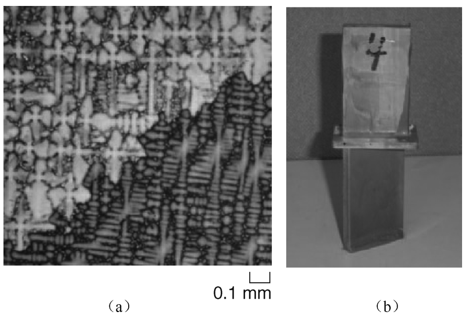 The microstructures in different sections of the whole blade of group A by experiment with a constant withdrawal rate is shown in Figure 10.It could be seen both in the simulated and experimental results that stray grains appeared at the edge of the platform and grew up to the top of the blade. That explains why a high withdrawal rate would not be acceptable to get a complete single crystal blade casting.