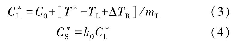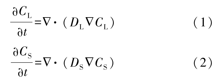 During the solidification process, for an alloy the solute diffusion is solved in the liquid and solid region, respectively, which is governed by