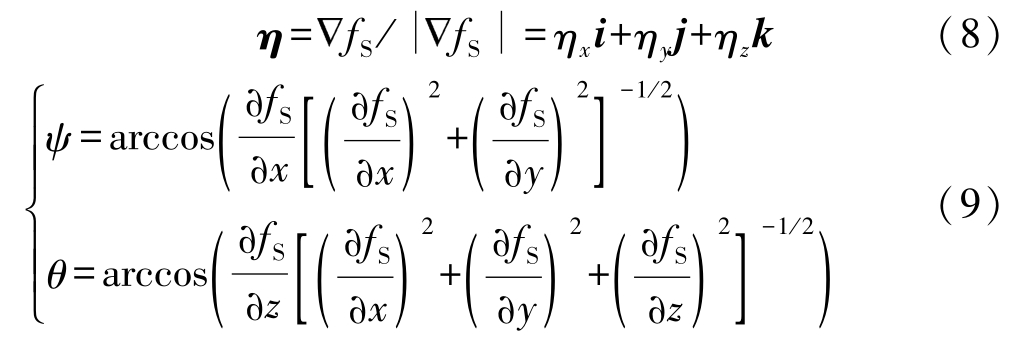 In order to calculate θ and ψ , the unit vector normal to the interface η is simplified as follows:
