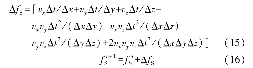 After calculating the velocity components in x -, y -and z -directions, the increment of solid fraction at the interface is obtained by