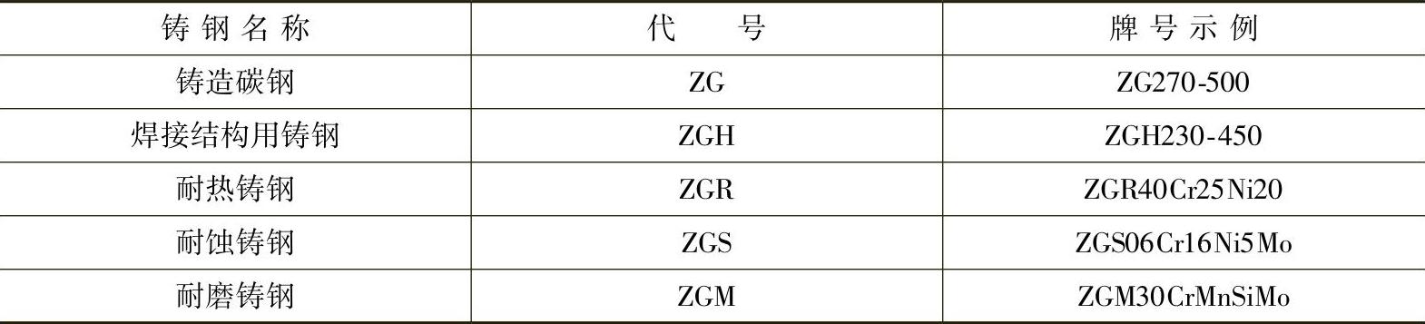 3.各种铸钢名称、代号及牌号示例 (见表1-6)