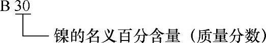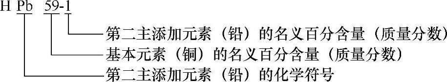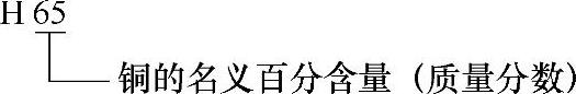 (1)铸造有色纯金属 铸造有色纯金属牌号由铸造代号“Z”和相应纯金属的化学元素符号及表明产品纯度百分含量的数字或用半字线加顺序号组成,如ZAl99.5、ZTi-1等。