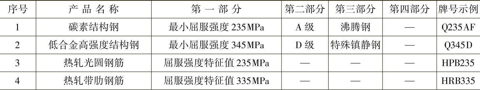 碳素结构钢和低合金结构钢的牌号示例见表1-9。