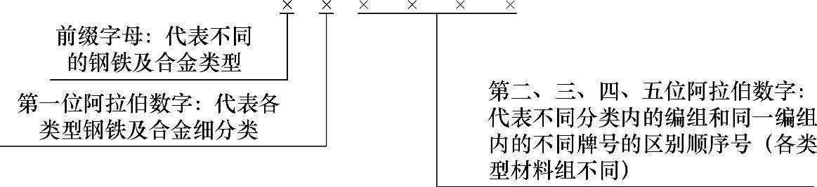 根据GB/T17616—2013的规定,钢铁及合金牌号统一数字代号的组成如下: