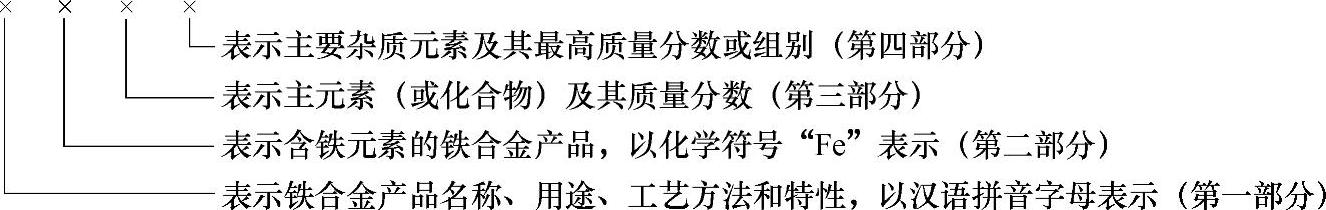 各类铁合金产品牌号表示方法如下: