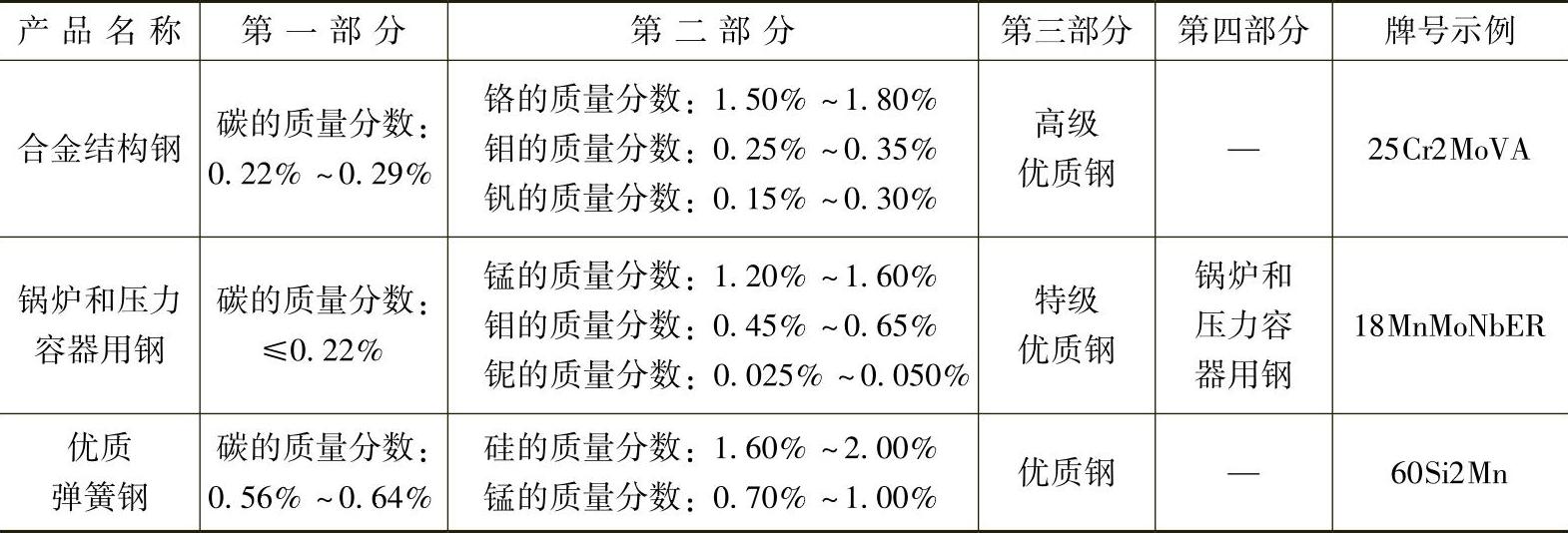 表 1-11 合金结构钢和合金弹簧钢的牌号示例