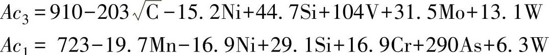 不仅加热和冷却速度对临界点有影响,钢中的合金元素对临界点也有影响。合金元素对钢临界点的影响可以通过下列公式进行计算,根据合金元素的种类和数量计算出每个钢的临界点(℃)。