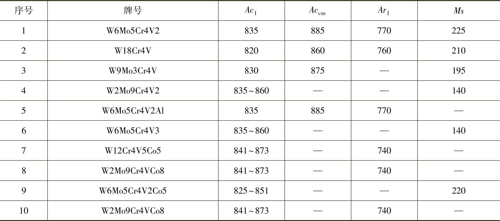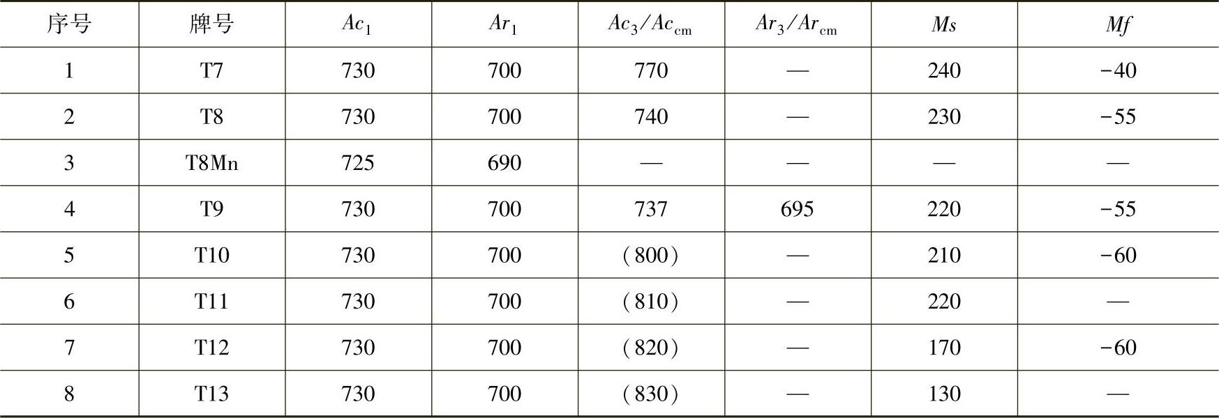 表 2-2 碳素工具钢的临界点(单位:℃)