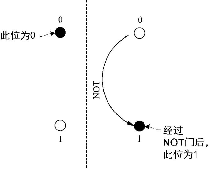 图2.5 经典的NOT操作将一个经典位在0和1之间翻转。例如,如果一个位开始是0状态,NOT将其翻转到1状态