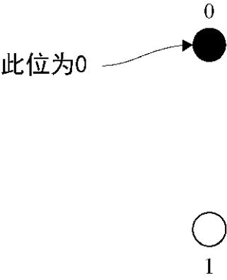 图2.4 一个经典位可以处于两种不同的状态之一,通常称为0和1。可以将一个经典位描述为处于0或1位置的黑点
